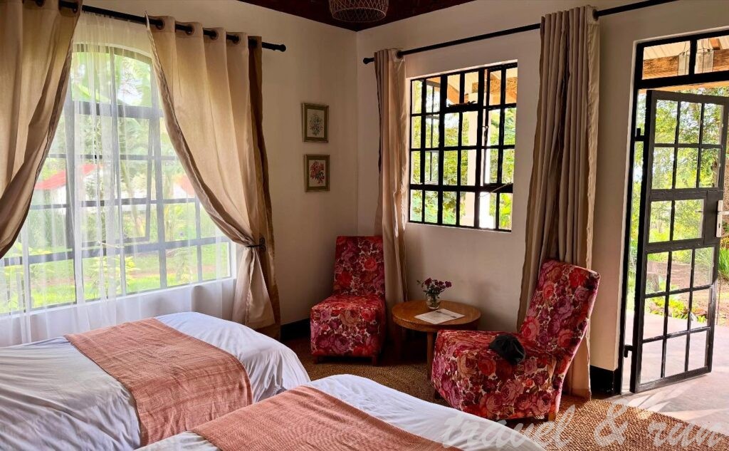 上圖: Simba Farm Lodge 的花園,與民宿房間內、農場工作區的長相