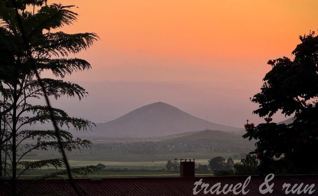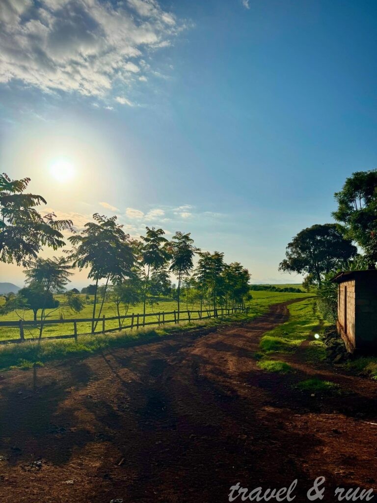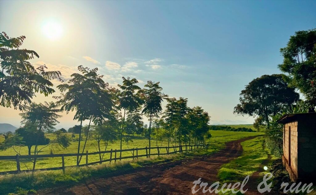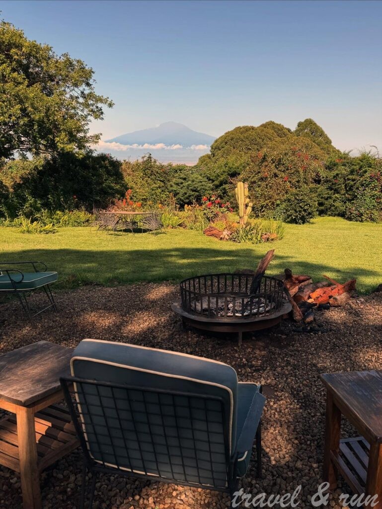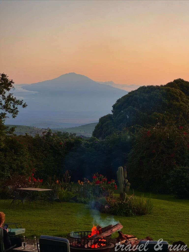 到了 Simba Farm之後,景觀為之一變,田地本身沒什麽好說的,就跟世界各地一般的田地沒兩樣,但農莊的待客區就很舒服的歐式莊園,吃住都滿好的,乾乾淨淨漂漂亮亮的花園跟用餐區,讓人完全感受不出來農場外的發展落後景觀。安頓好行李後大約下午四點,我看距離晚餐前還有時間,就去農場繞一圈跑了大約7km。這裡海拔大約 1700M,所以雖然接近赤道 (大約南緯3度而已,根本可以說在赤道旁),但是因為海拔高氣候還算涼爽,日落時分其實還滿適合在野外跑跑的。跑完結束剛好可以在花園用餐,並欣賞日落與暮光中遠方的幾座高山 (除了 Kilimanjaro之外,這邊還有一座海拔高達4,562高的 Mt. Meru ,以及散落在東非高原上的一些小山)。今晚吃飽喝足,試了一罐 Kilimanjaro beer (名字聽起來很威,但是他就是個啤酒而已)。晚餐結束後,接下來七天的導遊 Salim 有先來說明一下接下來幾天的行程,要我們好好睡一覺,明天只是熱身,後面才是真的爬山。東非這邊跟台灣時差5小時,所以晚上九點其實已經是台灣的半夜兩點了,加上中間轉機也沒睡好,所以基本上是倒頭就睡。