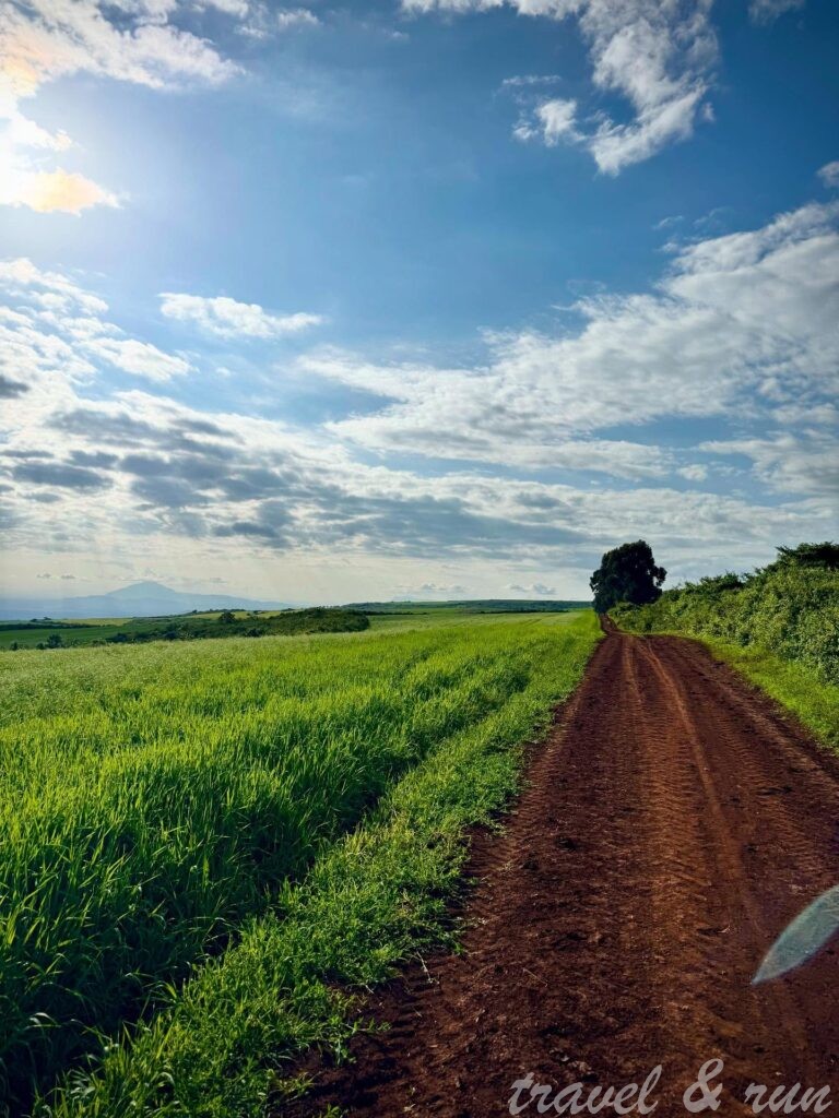 5~10. 繞著農場的某塊田地路跑 7km的沿途景觀,一開始有點熱,但後還有風就還好,還算舒適。