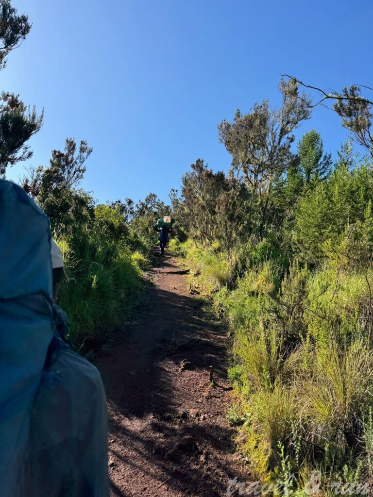 Day1 PM: Lemosho gate (2300M) to Mti Mkubwa Camp (2800M), 距離大約 6km, 費時約 3hr