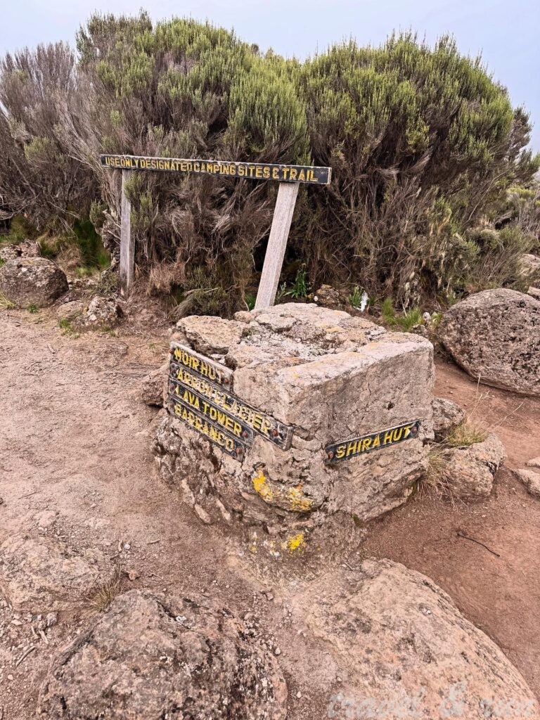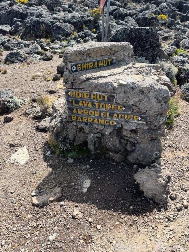 7~9. 岔路路標,有個 Arrow Glacier 明顯的告訴你這邊 (曾經)是個冰河。這個岔路也可以直接到今天的終點 Baranco Camp,但直接去就太沒挑戰了,還是要衝上4600M的 Lava Tower用餐在下來才夠精實。這邊差不多是上坡路跟平緩路的分界點。從這邊開始就比較平,甚至還緩換的下去,緩緩的上去,直到最後 Lava Tower又會再上坡衝一波。