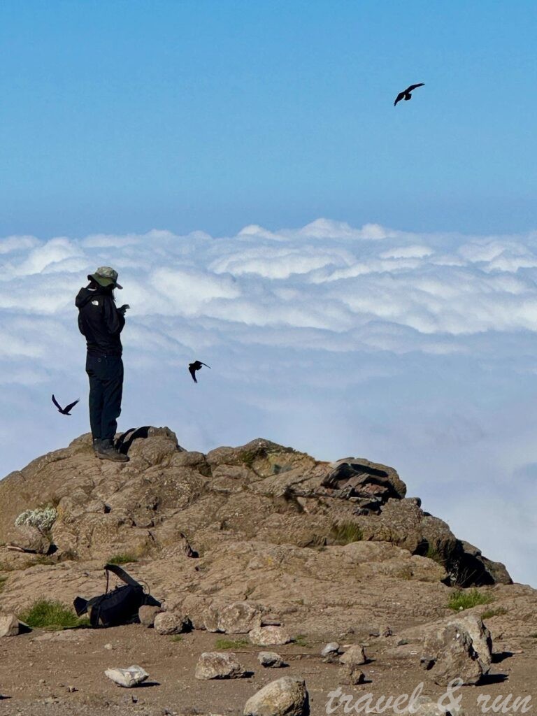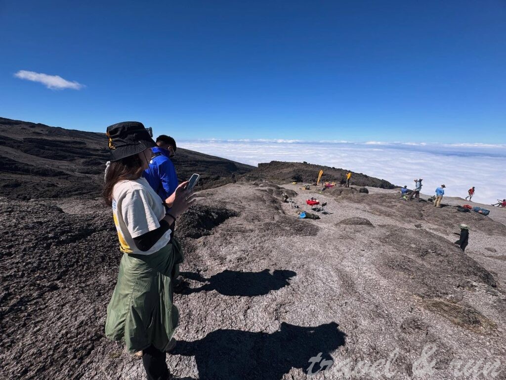 爬牆到Barranco wall 牆頂是一片大台地,視野良好,可以欣賞遠方的雲海。這裡是全部路徑中,最適合跟雲海拍照的地方,從上往下照,好像人都快跳進去雲海裡的樣子。