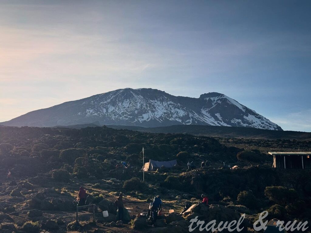 晚餐時間的 Shira Camp 2。夕陽的餘暉中,可以看到遠方的 Mt. Shira (4005M)的身影,雖說是三個峰裡面最矮的,但還是滿壯觀的。(P.S. 幫我的帳棚紀念一張,七天都靠他了)
