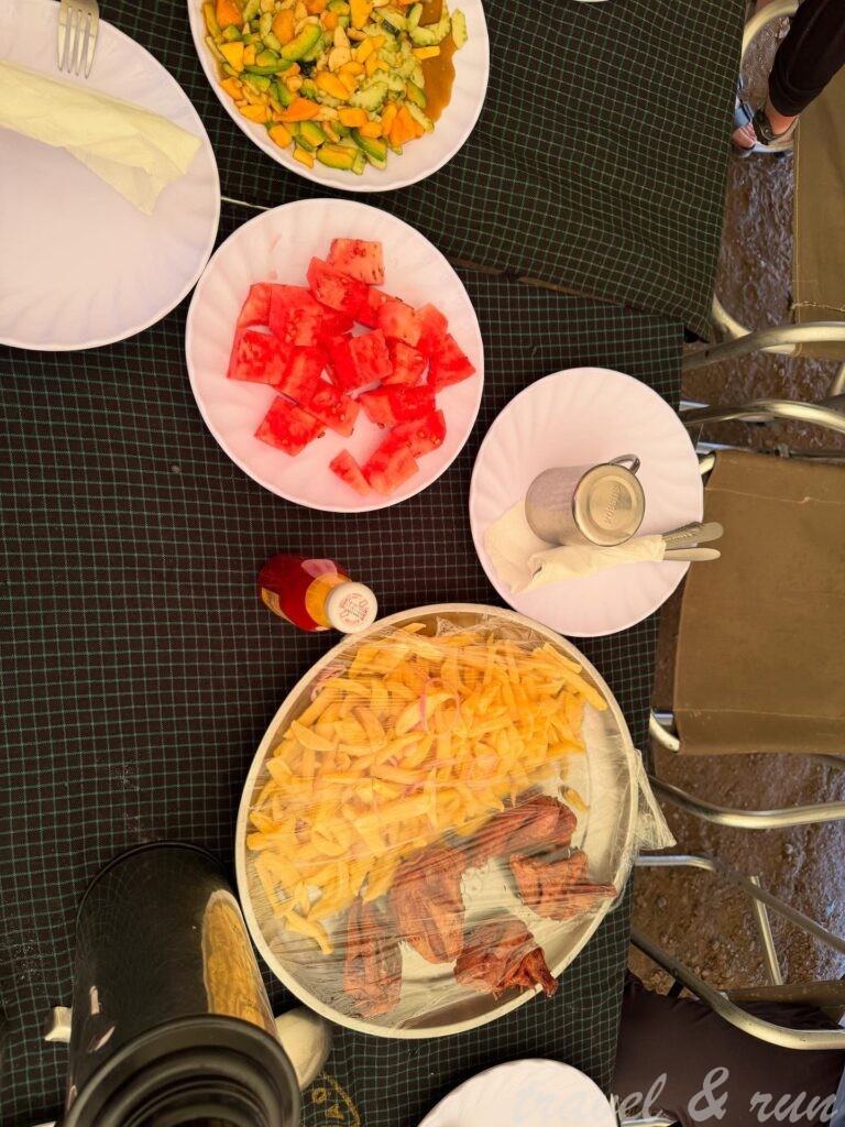 - 午餐很豐盛 (炸雞、薯條、西瓜、芒果沙拉)