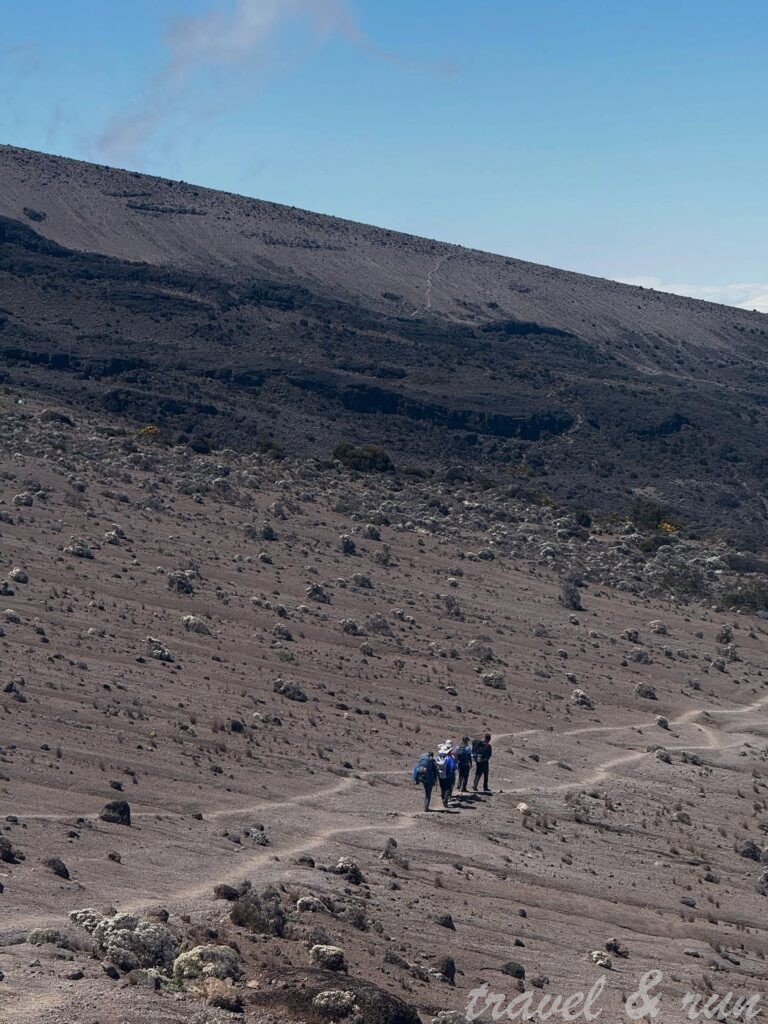 行程終於進行到了一半。今天是距離跟時間都比較短的高山適應日,預計午餐過後就可以放風休息了。從Barranco (3960M) Camp 走到 Karanga Camp (3963M), 距離大約 5km, 費時約5.5hr。雖然距離不長,但是要經過兩個陡峭的上坡,老實說也不是真的有多輕鬆。