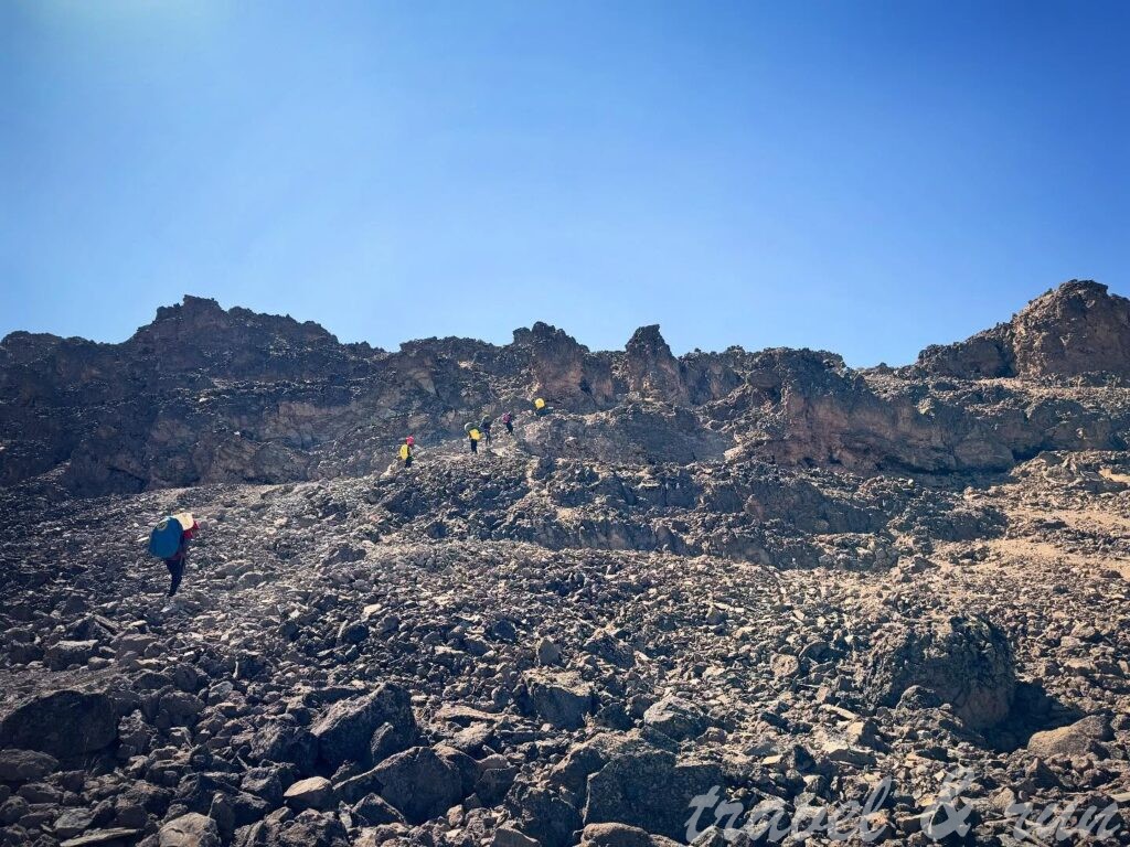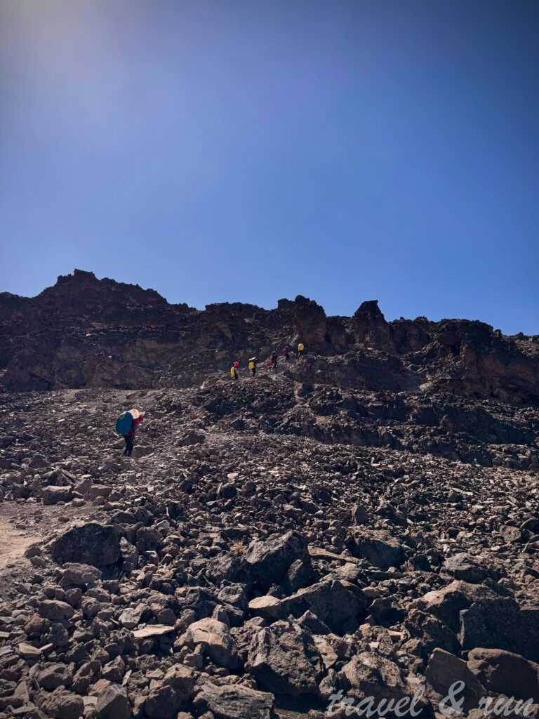 來到的行程的後段,第五天的路程不管長度或是時間都是全部最短的。從Karanga (3963M) Camp 到 Barafu Camp (4600M), 距離大約 4km, 費時約 3.5hr。之所以安排這麼短的一天,是因為今晚 23:00要起床,23:30簡單的吃點熱量補水之後就要進行攻頂了。