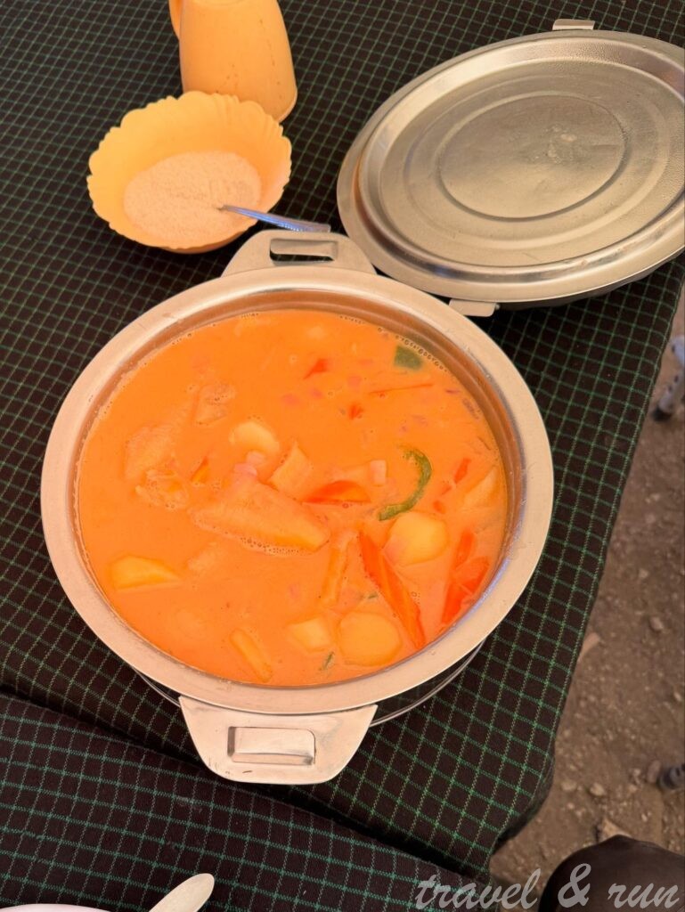 其實我才剛坐下來放下背包,管家 Selic就來跟我說已經燒了一鍋熱水要我去沖澡,善解人意的好管家,真是令人感動~~洗個澡,吃飽飯,每個人都無意多留在餐食帳中,趕快回去自己的帳棚裡像是小 baby般的昏睡過去。
