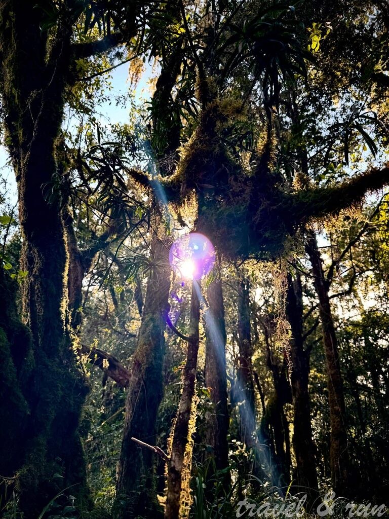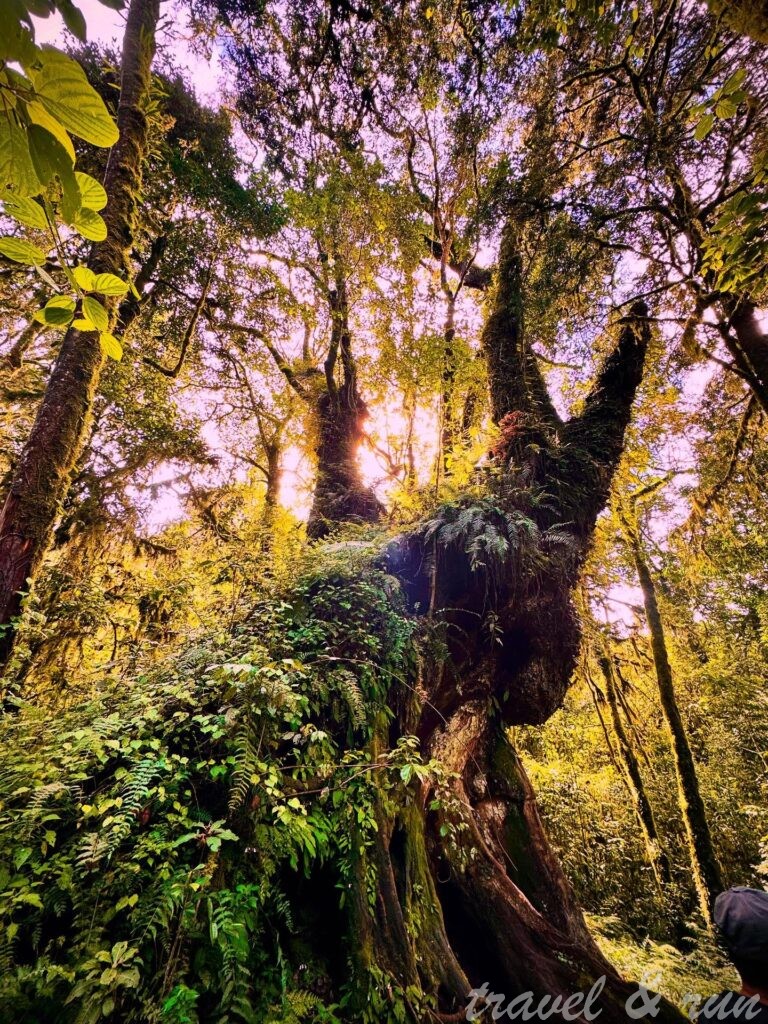 - 今天後半段大致上都在這種雲霧裡面前進,一開始還是乾乾的地面,後來就是軟軟的泥土地跟熱帶雨林了。