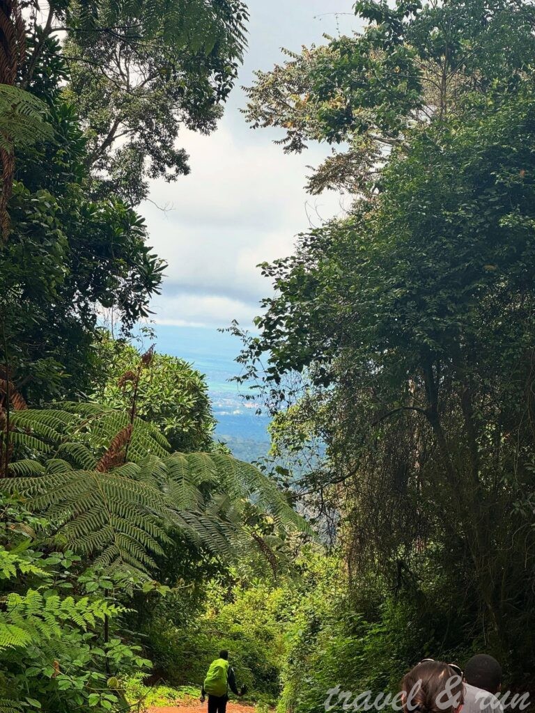 2.~6.今天沿途都是這樣的路,雖然越走海拔越低,氣溫鍵高,但畢竟是在林中有樹蔭,而且海拔最低也還是 1600,體感溫度是還好。帶隊的 Ahemed 還不時跟我們解釋沿途的一些有趣的植物。 - 終於,在接近登山口的最後半小時,看到了遠方文明的跡象,眼淚都快流出來了。