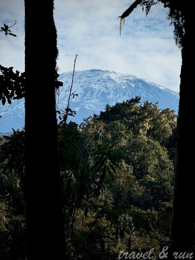- 下山大約30分鐘後,有幾個樹林中的間隙,可以回頭欣賞昨天還在上面的 Kibo火山山頂 (看到時有種難以置信的感覺)。