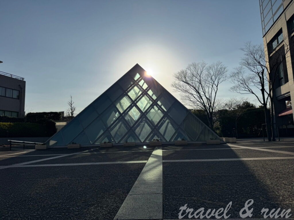 在高架橋下等著過馬路的時候,就發現對面有個仿羅浮宮的玻璃金字塔,看來是旁邊的商業大樓設立的地下室入口裝置藝術,但此時剛好陽光從他後面照上來,金黃色的玻璃金字塔格外搶眼。繞過金字塔後面就是玉川上水旧水路緑道 (代々木緑道) 東側,這是一條把以前的水路加蓋變成的曲折小路,東側只有一小段,畢竟東邊就是熱鬧的新宿、原宿鬧區,但是西邊的玉川上水旧水路緑道 西原緑道則是曲折的延伸了大約 4km一直到 JR京王線的代田橋駅,不介意轉車的人,可以試看看這條路,結束後先坐火車京王線回到新宿再換車。從剛剛的旧水路緑道 沿著住宅區的小巷子往南,下一條大馬路就是明治神宮跟代代木公園的廣大綠地。有趣的是,跑到這邊的時候,聞到一股馬草跟馬糞的綜合氣味 (可能是因為呼吸比較深,對於氣味就比較敏感),原來這裡還有一個東京乗馬倶楽部,有人在這裡練習馬術,也有個馬廄給馬休息 (能在東京騎馬,應該是上流社會的休閒活動)。接著旁邊就是明治神宮西入口,我在門口照相留念的時候,警衛怕我跑進去神宮,還特地走上前來跟我說神宮裡面不能跑步,請跑外圍,或是在裡面用走的。畢竟是別人的地盤,為了尊敬一下明治天皇,就回頭一小段繞外圍跑。在到代代木公園之前,先經過了一個廣大的建築群,国立オリンピック記念青少年総合センター,看來是之前辦奧運的時候的選手村,改建的青少年運動中心,有些看來就是外地來參加比賽的少年人,住宿在這邊,另外還有一些室內運動的場館。進去繞一下之後,就回來繼續跑大馬路邊的人行道,這邊都是下坡,人行道也算寬敞,還滿容易跑得。先是經過了一動看起來超高級的住宅 (Bedivere Mansion)就到了代々木公園。這個廣大的公園,因為離車站近,有大停車場,內部又是內外環兩個步道,而且林木密佈,自然而然成了跑團練跑的好場地。我在這邊先是跟著一個跑團後面跑外圈(一圈大約 2km),又往內圈去 (大約 1.5km)試看看,然後又在外圈繞了一下樹林,才從東南邊的天橋公園出口 (渋谷門展望デッキ)過天橋直接跨過大馬路,往澀谷方向前進。在天橋上就可以看到前方林立的高樓大廈,知道今天的終點不遠了。經過巨木高聳的櫸木大道 (代々木公園 ケヤキ並木通り),直接過馬路接上對面的公園通り,這邊是緩下坡,曲折的馬路雖然有人行道,但是畢竟是往鬧區跑,路人越來越多,只能放慢腳步,順著馬路到底就是世界知名的渋谷駅前五岔路口。在這邊跟忠犬小八合照了一張紀念照後,準備搭火車回去池袋。從澀谷這邊坐車回池袋就很方便了,JR各線 (山手線、京葉線、湘南新宿線)或地鐵副都心線往北坐都只需要 10~15分鐘就到了,在東京路跑的好處就是交通方便,可以設計很多單程路線最後坐車回來,不用擔心都要還狀路線回起點。