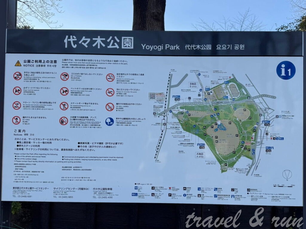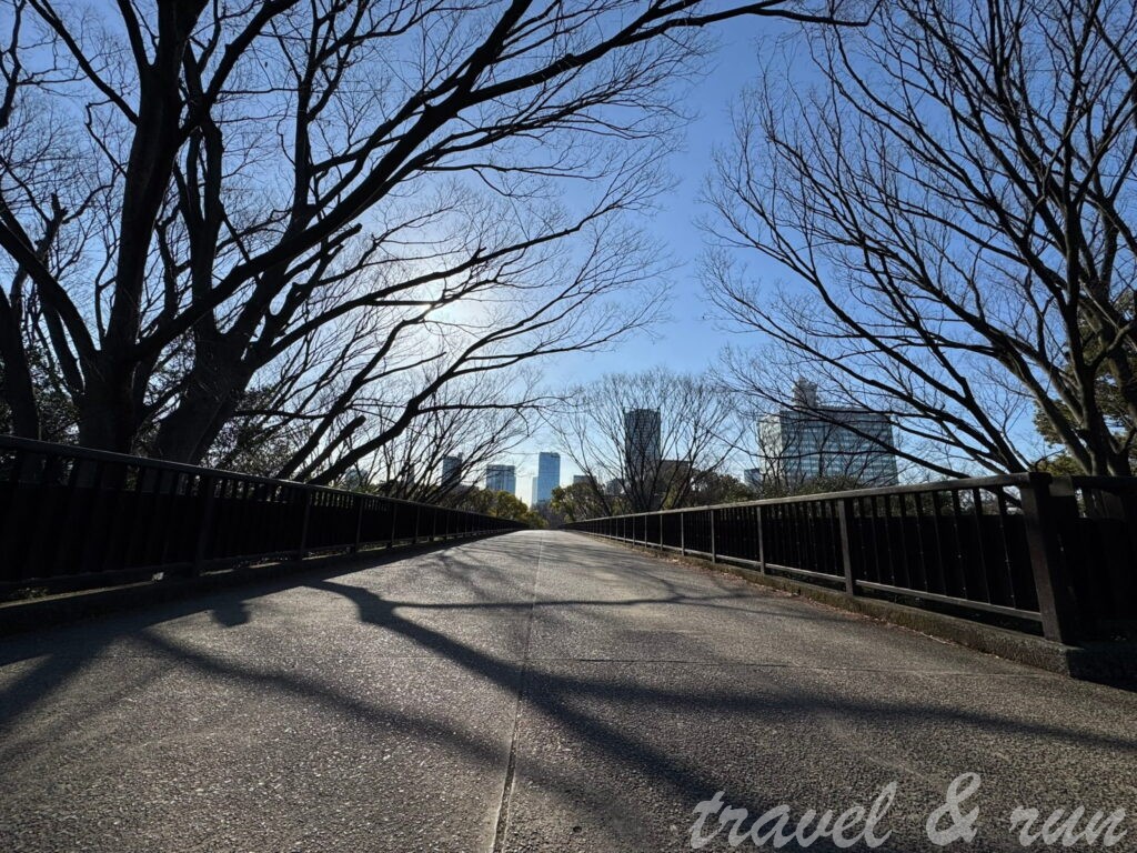 - 景觀度: 5 分 (滿分10分) :前半段經過的大多是住宅區,從新宿開始算是商業大樓區。除了公園、神社、河畔還沒開的櫻花以外,可以說沒什麽景點。但是代代木公園是個滿適合跑步的地方,有圓圈步道跟滿滿的樹木,相當舒服。