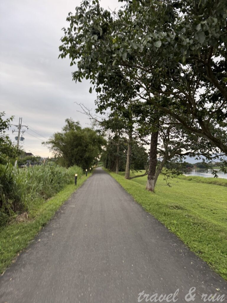 - 難度: 簡易。全程都平地,但因為大多路段都是在河邊人行專用道跑,其實可以無腦就順著河邊一直跑。為了要做還狀路線回到起點所以有過橋、切入田園等路徑,但根據地圖上看來,如果不想上馬路,可以一路沿著冬山河跑到它的出海口去,在搭公車或計程車回去 (當然也是可以回頭跑回羅東啦)。